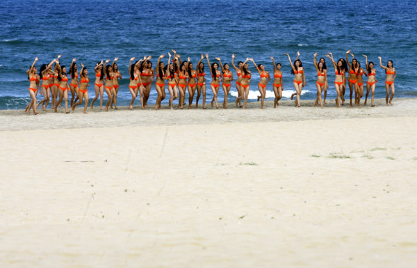 Trên bãi cát dài trắng mịn các gót hồng trong trang phục bikini càng làm cho không khí ở đây thêm nóng bỏng.