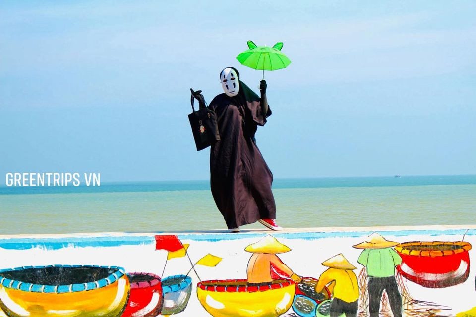 Đặc biệt, trong dự án này, khi “Bức họa ven biển” bước vào giai đoạn 2, các tình nguyện viên và người dân Phước Hải cùng hoàn thiện bức họa, đã xuất hiện một “Vô Diện” làm đại sứ môi trường cho dự án. “Vô Diện” không chỉ dừng lại như một nhân vật trong phim hoạt hình hư cấu Nhật Bản, mà đã thực sự trở thành một hình tượng đẹp đánh thức niềm vui và tâm hồn của mỗi người. “Vô Diện” trở thành một phong cách độc đáo cho những người khuấy động tình yêu cuộc sống: “Chúng mình nhận thấy, không con đường nào tốt hơn bằng việc dùng cái đẹp để kết nối những tâm hồn với nhau. Khi cái đẹp len lỏi vào cuộc sống chúng ta, bằng cách nào đó, mà cả những người vẫn hay cho rằng tâm hồn mình toàn sỏi đá cũng sẽ có dịp nở hoa. Cứ như thế, khi tâm hồn được khơi mở, biết đâu đấy, chúng ta sẽ tìm thấy những sợi dây đồng điệu để cùng nhau gắn kết đi đến mục tiêu chung - yêu thương vạn vật và dang tay nâng đỡ sự sống thay vì chỉ biết khai thác và tận diệt. "Vô Diện" đáng yêu này làm đại diện lan tỏa thông điệp: Hãy yêu môi trường, hạn chế tối đa tiêu thụ nhựa dùng một lần, không xả rác thải bừa bãi. Hãy hành động ngay hôm nay, bảo vệ cho thế hệ tương lai”, Kim Cúc chia sẻ thông điệp của dự án.