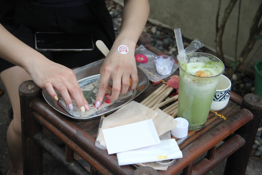 Tại workshop, người tham gia được hướng dẫn tự tay làm đèn trang trí từ hoa lá khô và các vật liệu tái chế, như túi lọc trà đã qua sử dụng, đũa gỗ dùng một lần, ống hút giấy, hoa khô ép, nến LED…