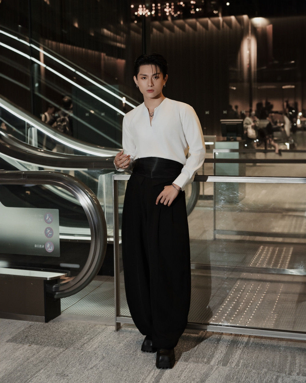 Lần đầu tiên xuất ngoại để tham dự sự kiện thời trang, GREY D tinh tế chọn trang phục mang bản sắc Việt với phần cổ áo tương tự cổ áo dài. Tại đây, GREY D có dịp gặp gỡ và chụp hình cùng Baifern Pimchanok, Win Metawin…