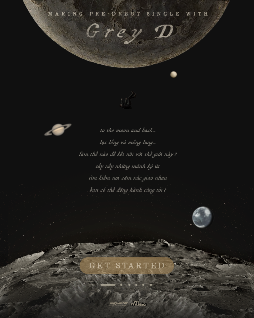 Grey D đã lên đến mặt trăng và quay trở về với địa cầu nơi có đam mê âm nhạc và những người hâm mộ. Trong dự án debut, hình tượng của Grey D là một người rơi lơ lửng giữa ngân hà, cùng lời tự sự về nỗi lạc lõng, mông lung trong hình trình tiếp đất và tìm kiếm sự kết nối với thế giới. Thông qua những mảnh ghép ký ức, cảm xúc, Grey D đang phát tín hiệu từ mặt trăng, ngỏ lời mời mọi người đồng hành cùng mình trên hành trình trở thành một nghệ sĩ solo.