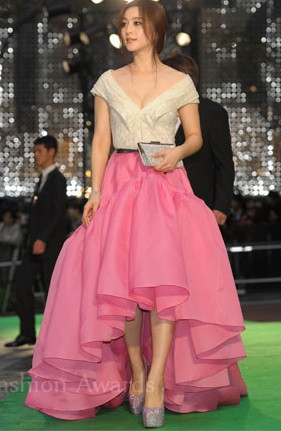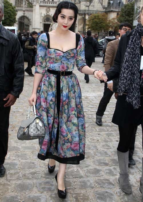 Phạm Băng Băng khoác lên mình bộ váy trắng kết hợp hoàn hảo giữa voan và ren, bộ váy là thiết kế mới nhất nằm trong Bộ sưu tập xuân hè 2012 của Nhà thiết kế Louis Vuitton, kèm thêm mái tóc xoăn nhuộm đỏ rực rỡ khiến cô thật ấn tượng.