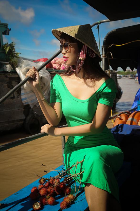 Hà Anh khoe đường cong nữ tính trên chợ nổi Cần Thơ