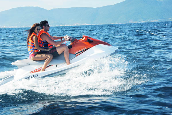 Cùng tham gia các trò chơi trên biển cùng Hà Anh là người yêu ngoại quốc của cô.