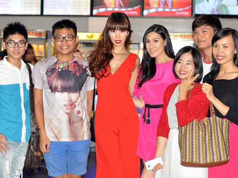 Ngay sau sự kiện, Hà Anh cũng đã nhanh chóng thay đổi trang phục và cùng đến buổi công chiếu phim "Âm Mưu Giày Gót Nhọn" của người bạn thân Kathy Uyên tại Hà Nội.