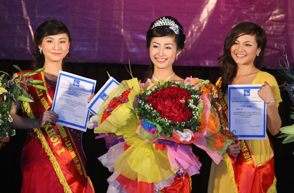 Ba gương mặt xuất sắc nhất tại cuộc thi Miss Law 2010 Á khôi 1 Nguyễn Hoàng Phương Giang, Hoa khôi Nguyễn Hà Chi và Á khôi 2 Trần Hoàng Mỹ Linh.
