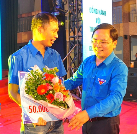 Anh Nguyễn Anh Tuấn, Bí thư thường trực Trung ương Đoàn (bìa phải) trao giải nhất cho nhóm tác giả đến từ Hà Giang