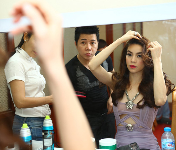 Nữ ca sĩ được chăm chút rất kỹ lưỡng trước giờ ra sân khấu.
