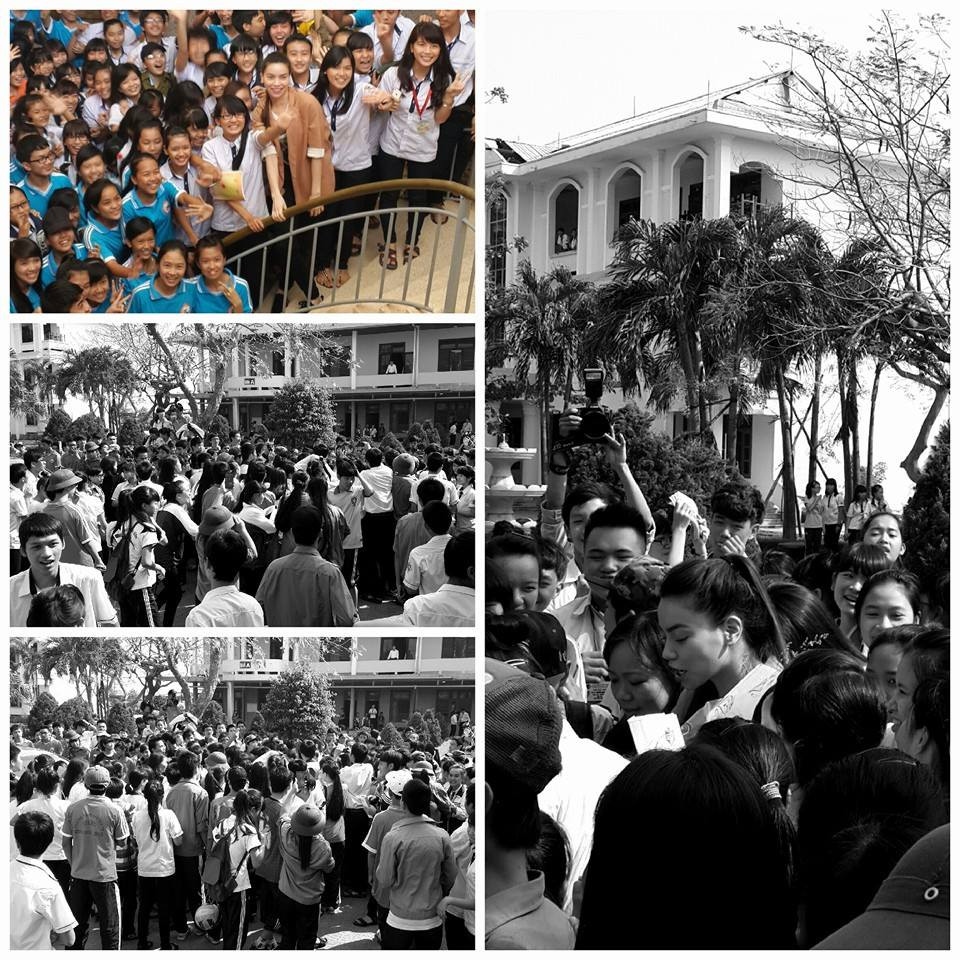 Hà Hồ viết: "Về lại nơi mình được dạy dỗ...vẫn gặp rất nhiều các thầy cô cũ và mọi thứ ko thay đổi nhiều...chỉ có bão lấy đi nhiều mái nhà, cổng tường, cây xanh...