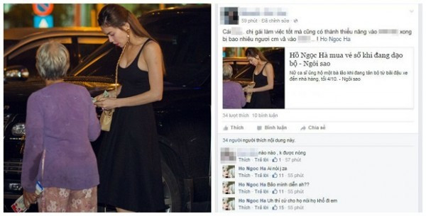 Xuất hiện lộng lẫy trong đêm chung kết Hoa hậu Hoàn vũ Việt Nam 2015, Hồ Ngọc Hà đã thổi bùng cả khán phòng với tiết mục My Destiny sôi động, nóng bỏng. Sau màn trình diễn ấn tượng đó, Hà Hồ đã lái xe đến một khách sạn 5 sao để gặp đối tác. Khi xuống xe, cô nhìn thấy một bà cụ bán vé số nên đã nhanh chóng mua giúp đỡ bà cụ.