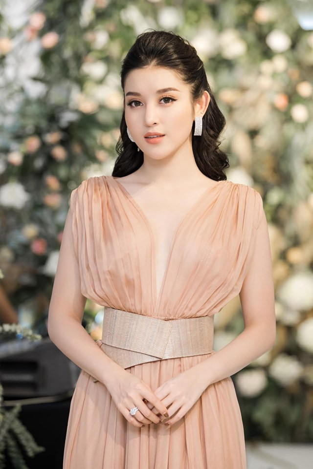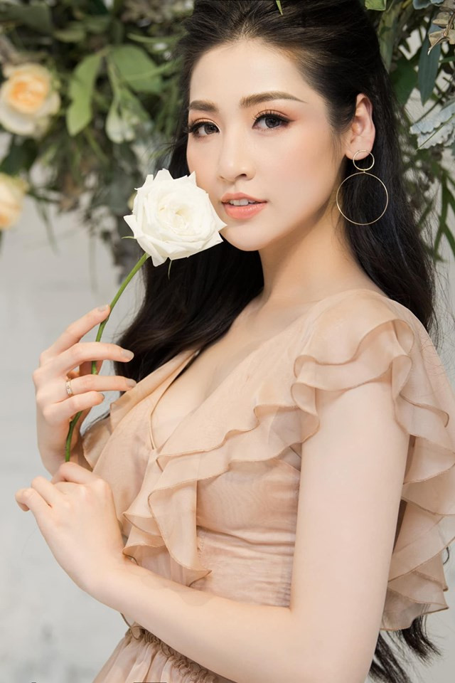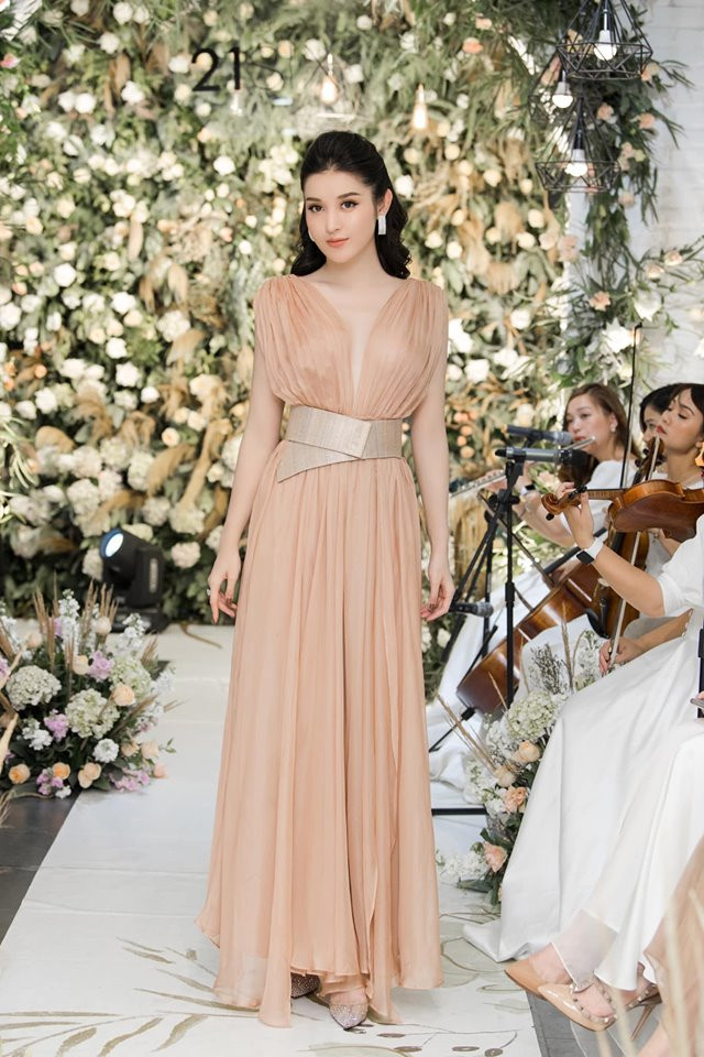Á hậu Huyền My đẹp dịu dàng tựa 'thần tiên tỷ tỷ' với bộ váy xuông màu nude.