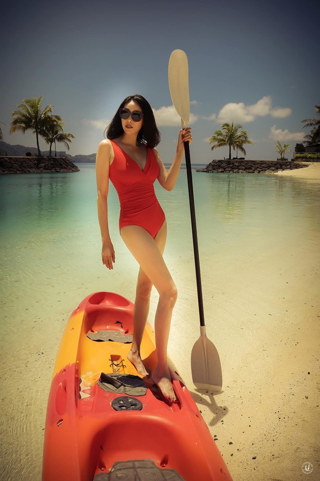Bộ bikini một mảnh tôn lên làn da trắng và vóc dáng thon thả, quyến rũ của Hoa hậu Việt Nam 1992.