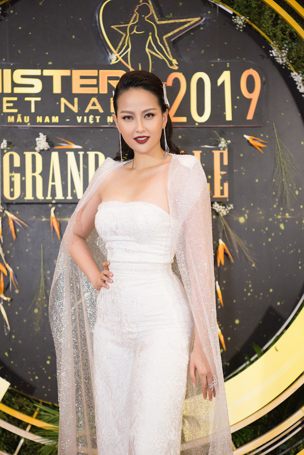 Á hậu Trương Thị May diện đầm đuôi cá sequin khoe vòng một gợi cảm. Cô cũng là giám khảo của đêm chung kết.