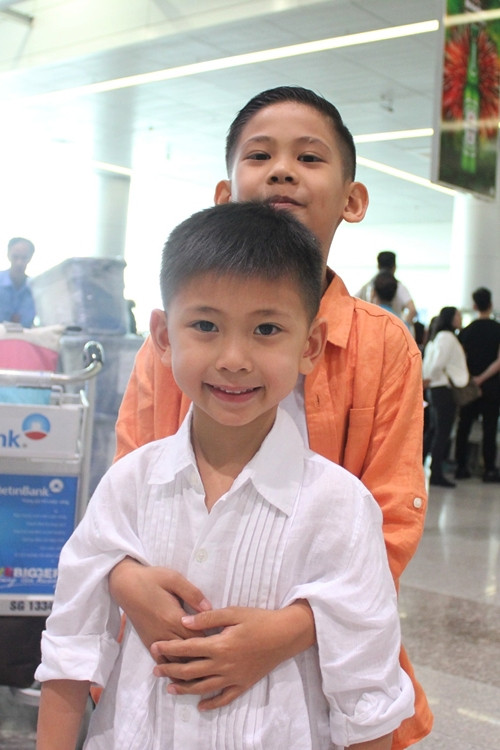 Anh trai Vương Khang (áo cam) rất thương và biết nhường nhịn em Vương Khôi. Hai con trai của Hà Kiều Anh cũng ở bên cạnh mẹ suốt thời gian mẹ sinh em.