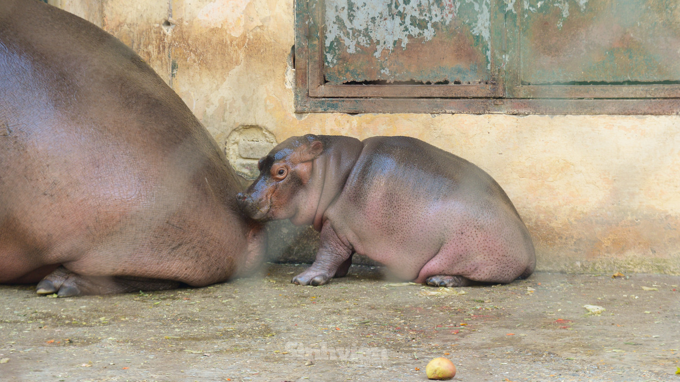 | “Thời gian đẹp nhất để ngắm hai mẹ con hà mã là 8h00 sáng. Khi đó hà mã con sẽ cùng mẹ lên bờ để ăn bữa sáng và chơi đùa, lúc ấy, chúng tôi cũng thực hiện công tác dọn dẹp vệ sinh và thay nước cho bể. Vì đang trong thời gian ở cữ nên phần lớn thời gian còn lại hai mẹ con chủ yếu ở dưới bể nước, vì thế du khách sẽ chỉ thấy được phần lưng hà mã mờ mờ dưới làn nước mà thôi”. - Ông Phạm Ngọc Anh, nhân viên Vườn thú Hà Nội chia sẻ. |