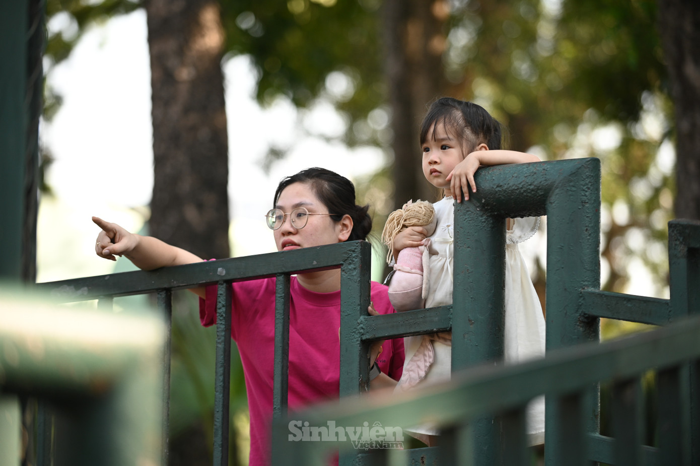 | Như Quỳnh (19 tuổi) cùng bạn tới Vườn thú Hà Nội từ sớm để xem hà mã con, Quỳnh chia sẻ: “Mình biết đến chú hà mã này qua TikTok và tự nhủ cuối tuần này phải đi Vườn thú Hà Nội để được nhìn ngắm tận mắt. 'Idol hà mã con' rất rụt rè, đáng yêu và… béo tròn.” |