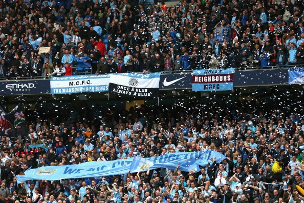 CĐV Man City háo hức tới sân Etihad để chờ đón ngôi vô địch của đội nhà. Nếu giành ngôi vô địch mùa này, Man City sẽ có lần đăng quang thứ hai trong ba mùa giải liên tiếp.