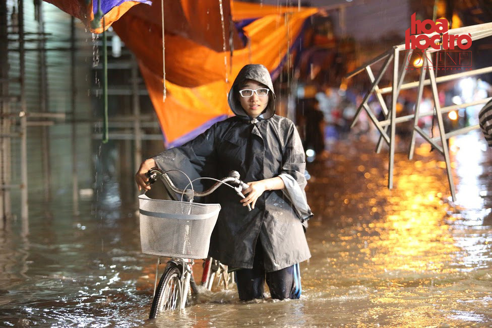 Người dân gặp khó khăn khi di chuyển vì mực nước ngày càng dâng cao khi mưa không ngừng lại.