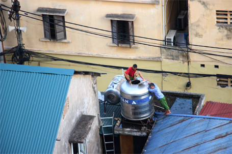 Hộ dân liền kề biệt thự đang kiểm tra téc nước