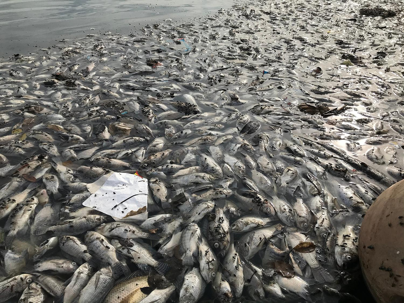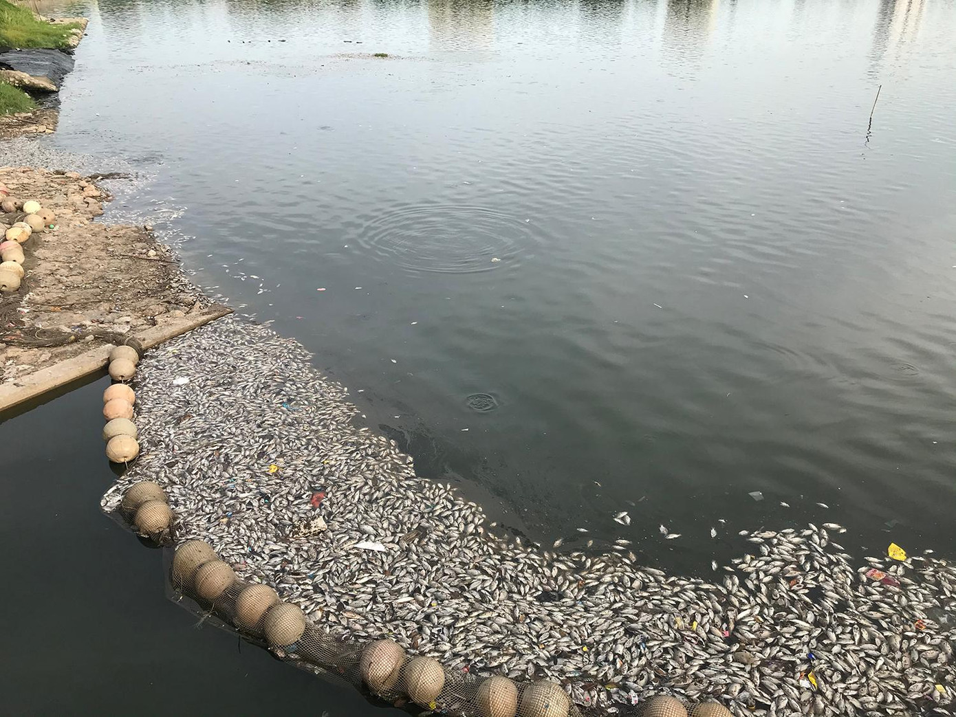 Có góc hồ cá chết tập kết thành mảng lớn, dày đặc