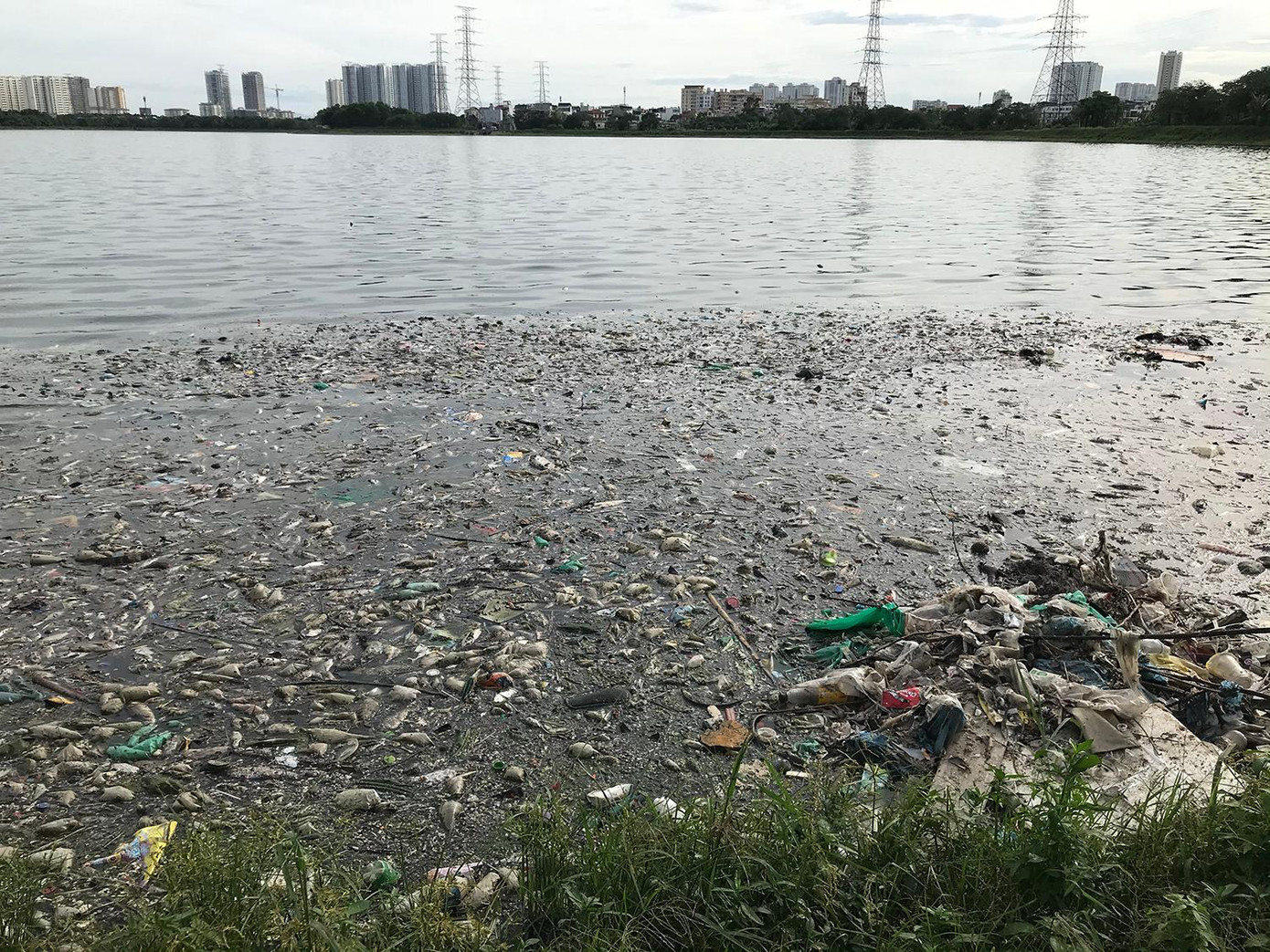 Cùng với xác cá chết, khu vực góc hồ xuất hiện khá nhiều rác thải