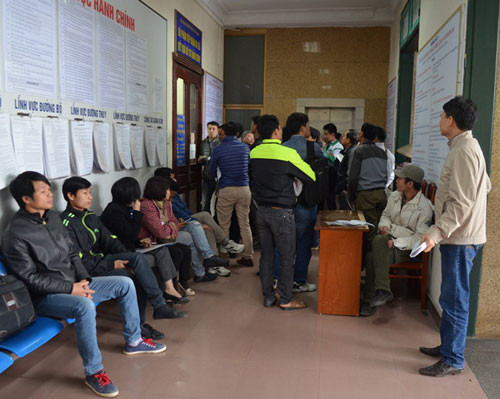 Nhiều người chưa biết thông tin cấp đổi gplx qua mạng nên vẫn đến làm thủ tục theo quy định cũ. Ảnh. Võ Hải/ VnExpress