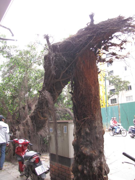 Theo một nhân viên Công ty cây xanh Hà Nội cho biết, cây bị gãy đổ này đã có từ khoảng bốn đến năm chục năm nay. Thân cây đã chết cách đây vài năm, phần trên thân do cây si sống cộng sinh, cành lá xum xuê, nặng trĩu khiến thân cây không thể bám trụ nổi, và đổ gãy vào sáng nay.
