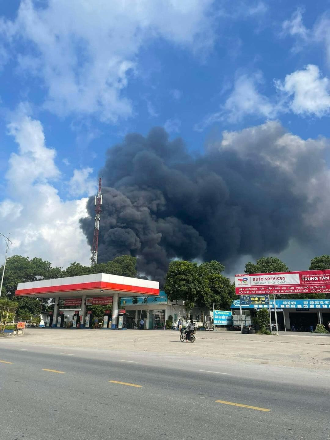 Vụ cháy xảy ra tại kho chứa xốp, nhựa thuộc Công ty Khang Trang khiến lửa bùng lên dữ dội, cột khói đen bốc cao hàng chục mét làm nhiều người hoảng hốt.