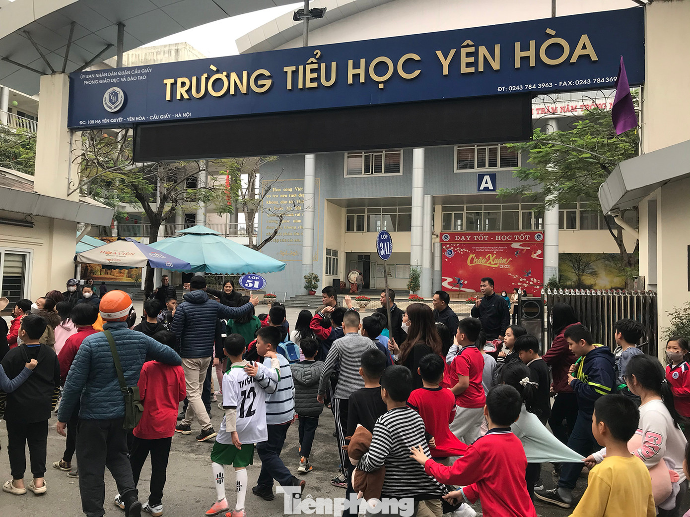 | Phụ huynh lo lắng tập trung tại cổng trường. |