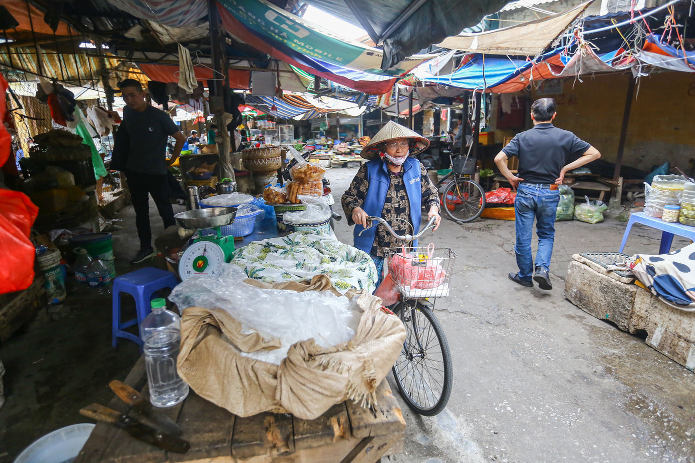 | Bà Xuân (70 tuổi), một trong những tiểu thương thiệt hại nặng nề sau thông báo chợ Mai Động đóng cửa. |