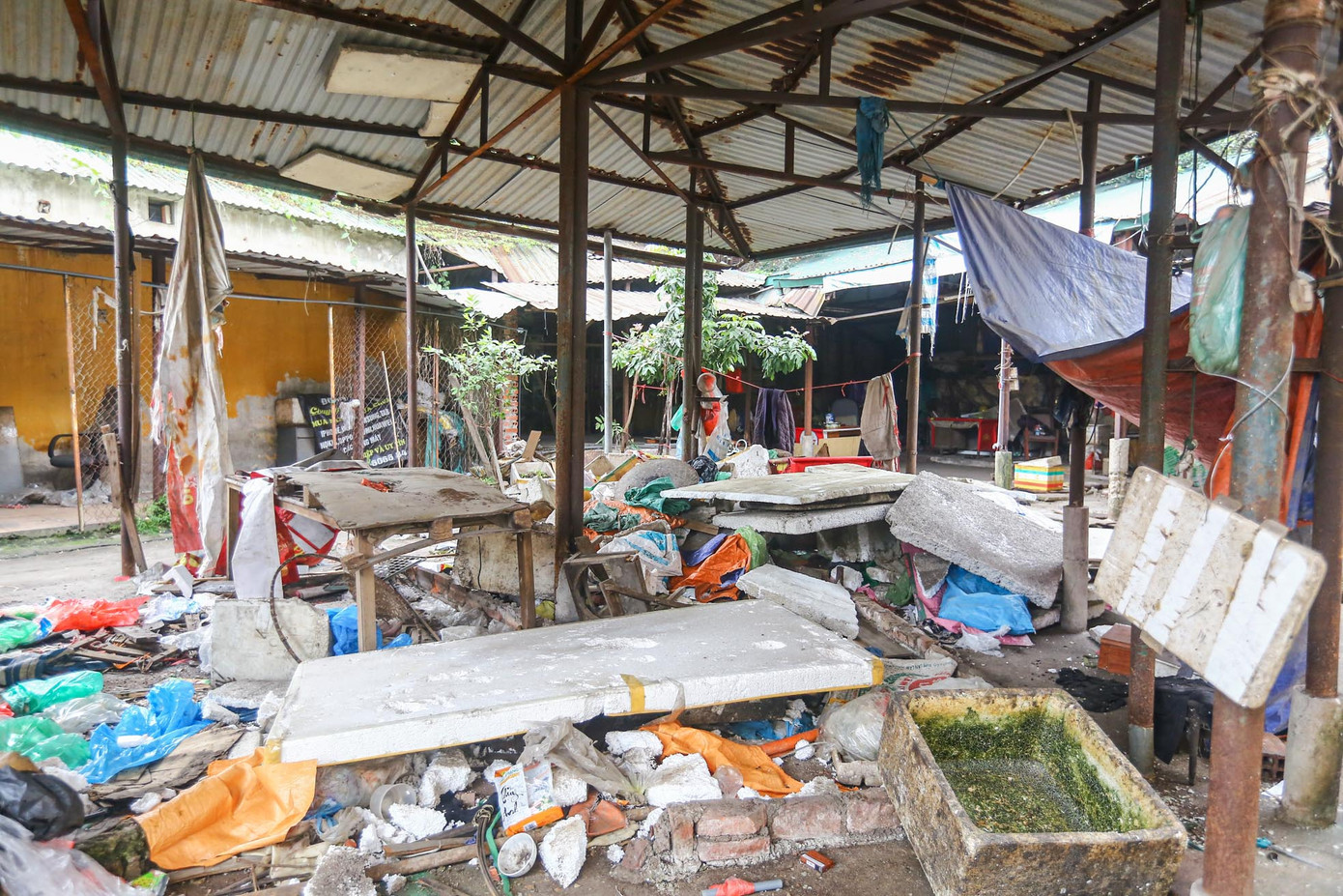 | Cảnh hoang tàn bên trong chợ sau khi nhiều ki-ốt đã chuyển đi. |
