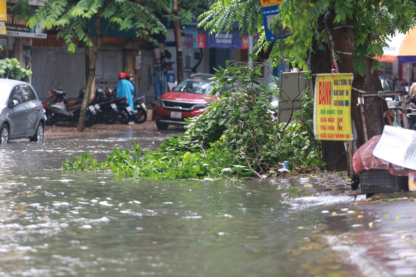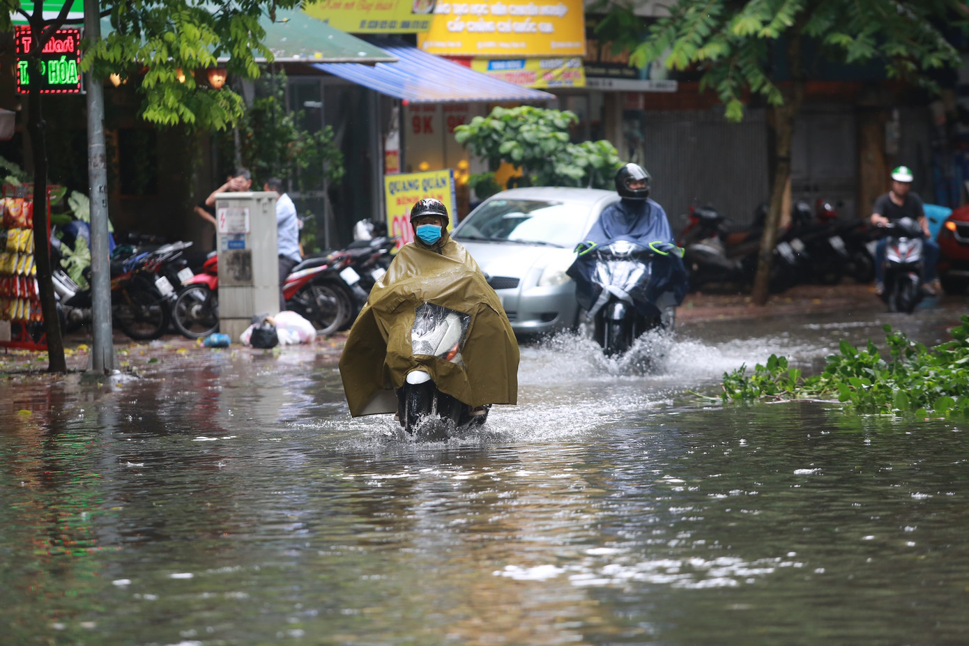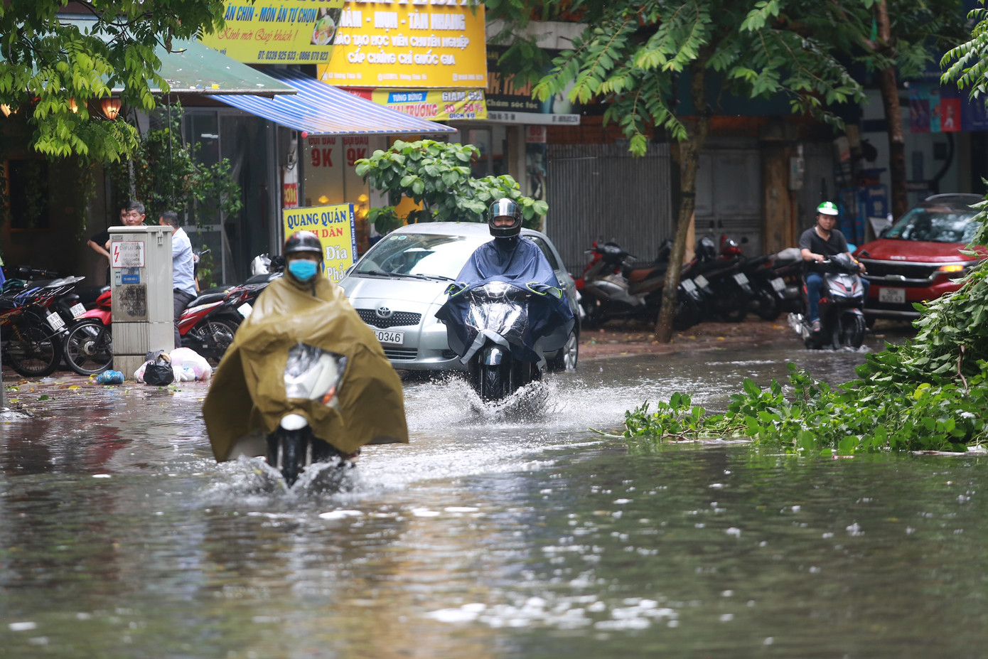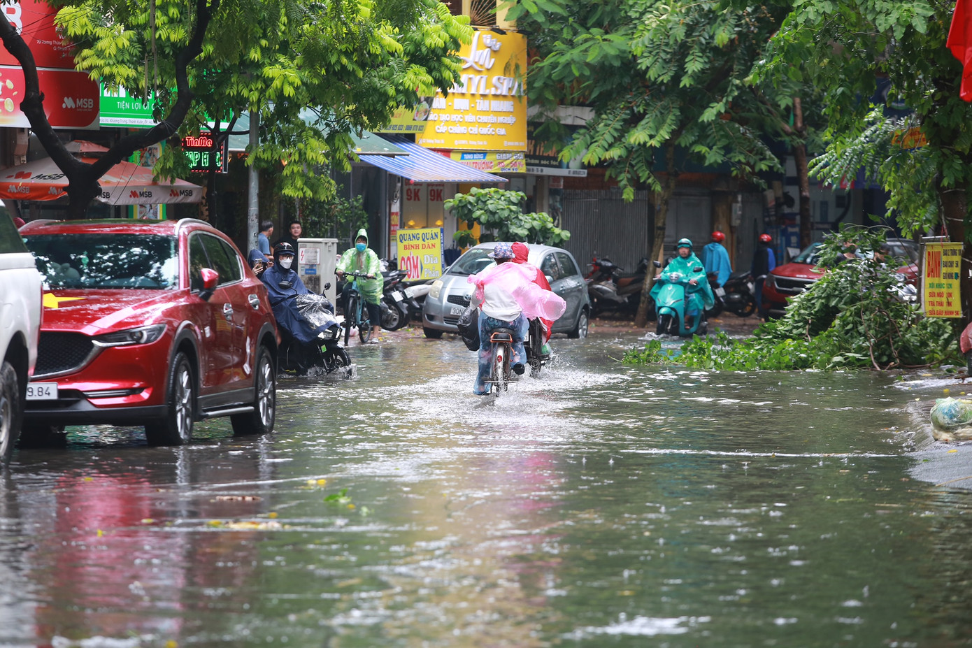 | Phố Vương Thừa Vũ chìm trong biển nước sau 20 phút mưa lớn. |