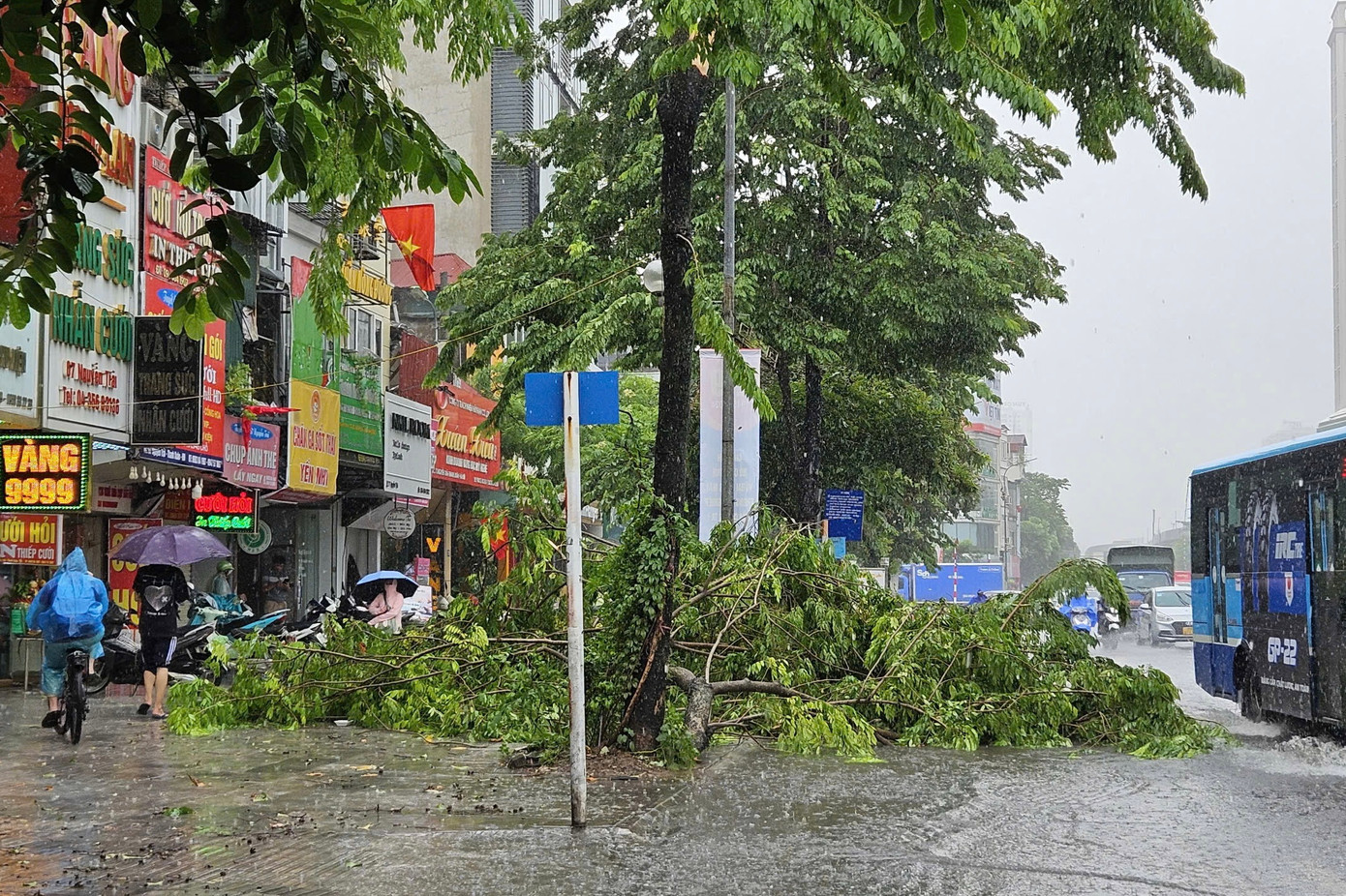 | Cây gãy đổ hàng loạt trên đường Nguyễn Trãi (quận Thanh Xuân). |