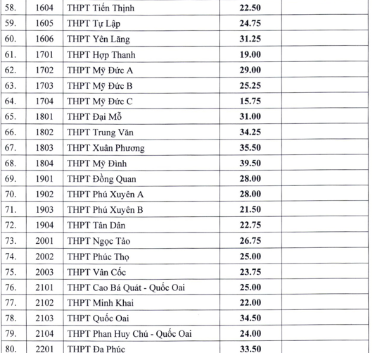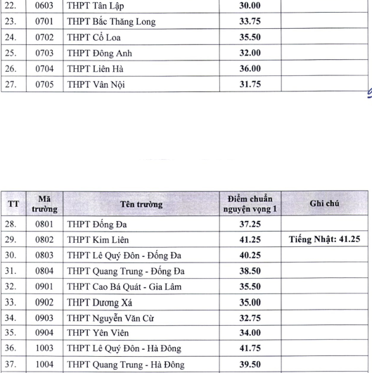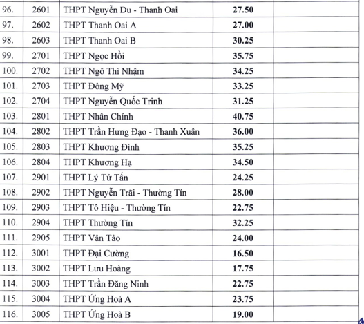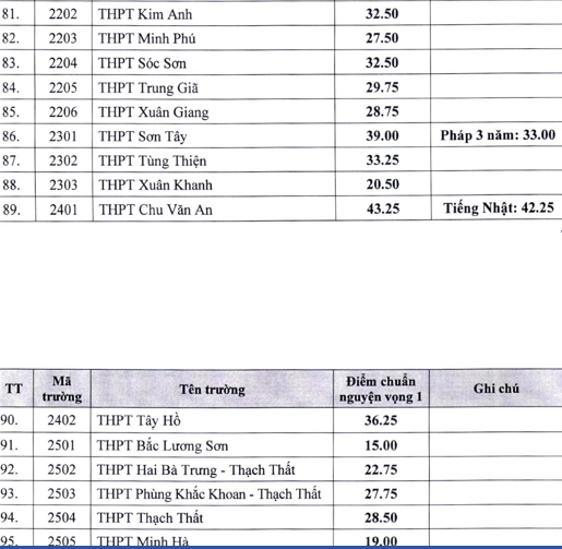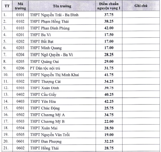 Theo đó, điểm chuẩn cao nhất là trường THPT Chu Văn An lấy 43,25 điểm.