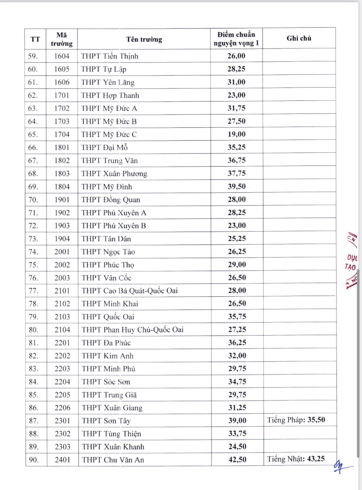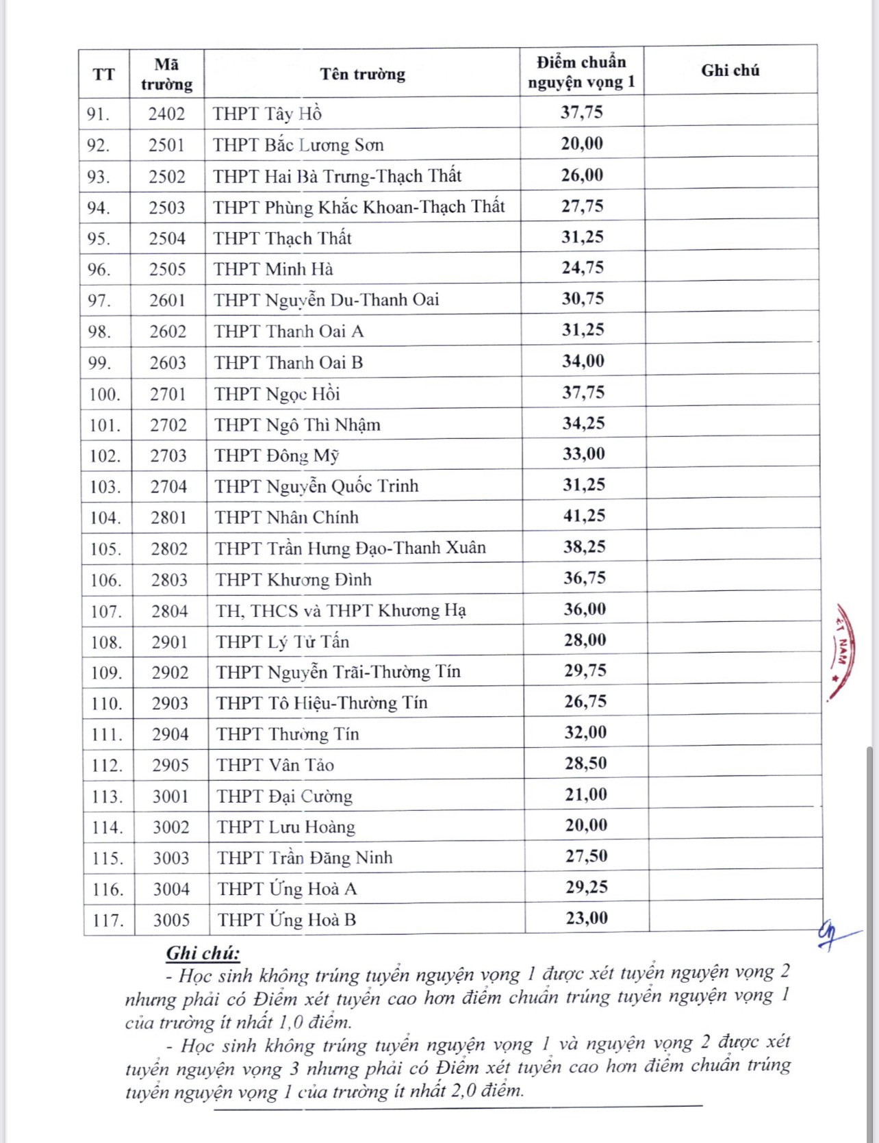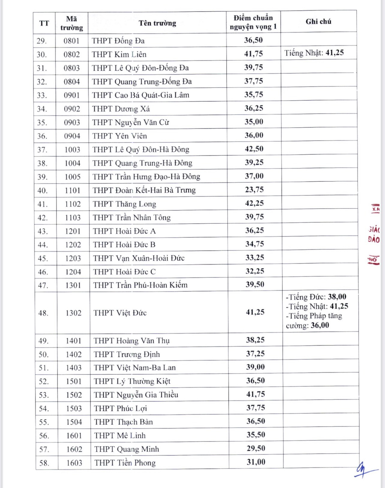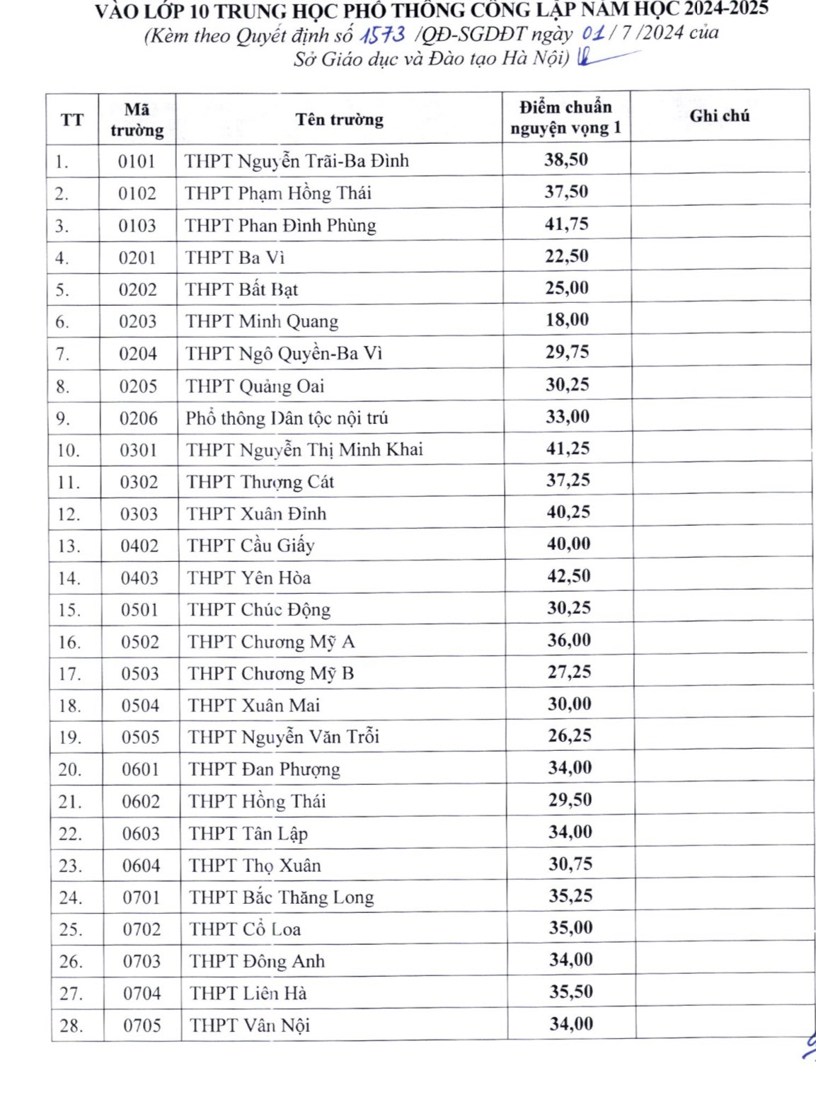 Dưới đây là danh sách điểm chuẩn các trường THPT công lập của Hà Nội năm học 2024-2025: