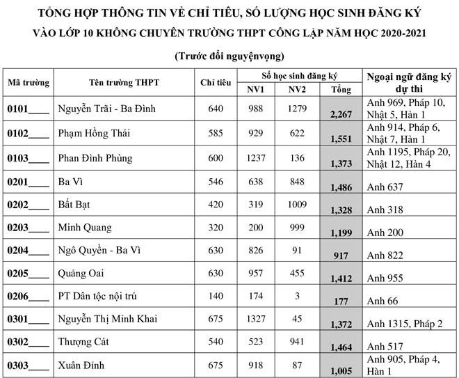 Số lượng học sinh đăng ký dự tuyển vào từng trường cụ thể như sau: