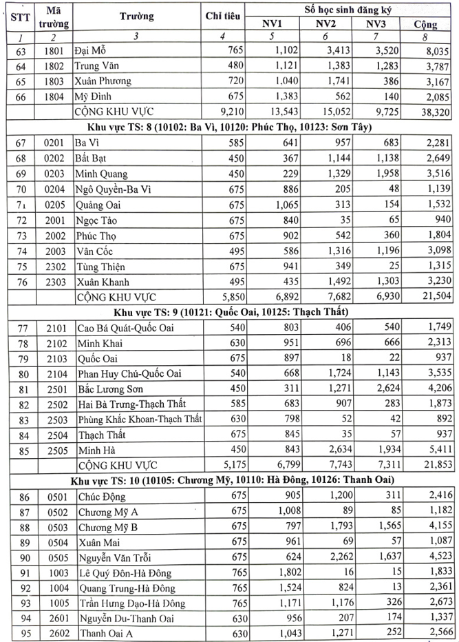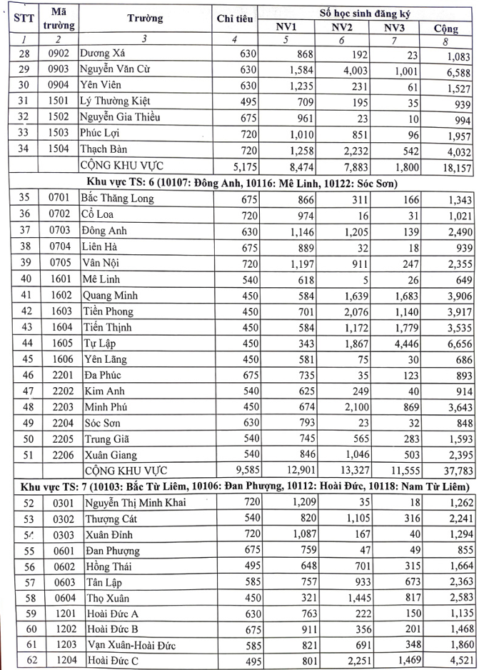Chi tiết số lượng học sinh đăng ký vào từng trường THPT công lập không chuyên như sau: