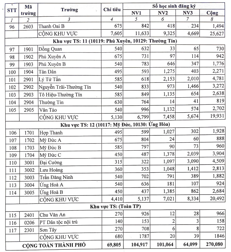 Theo thống kê của Sở Giáo dục và đào tạo Hà Nội có 104.917 thí sinh đăng ký nguyện vọng 1, số đăng ký nguyện vọng 2 và 3 lần lượt là hơn 101.000 và 64.000.