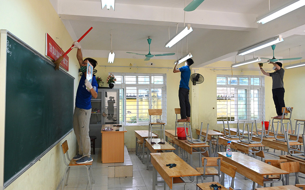 Các trường tất bật dọn dẹp vệ sinh trước khi các em trở lại.