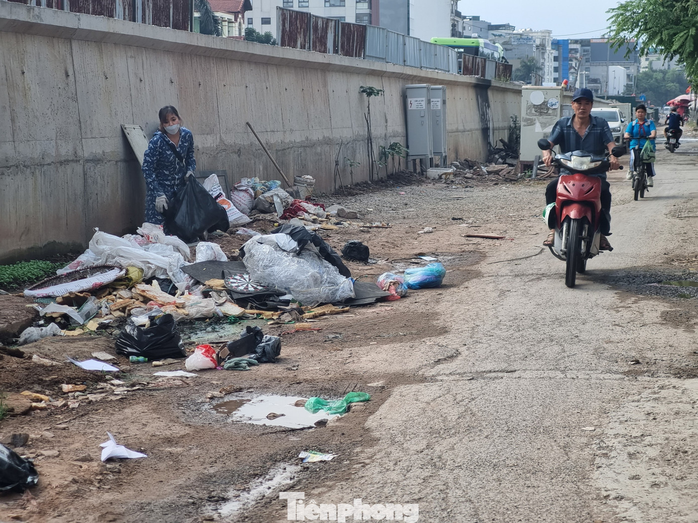 | Rác thải xây dựng có khắp nơi dọc tuyến đường. |