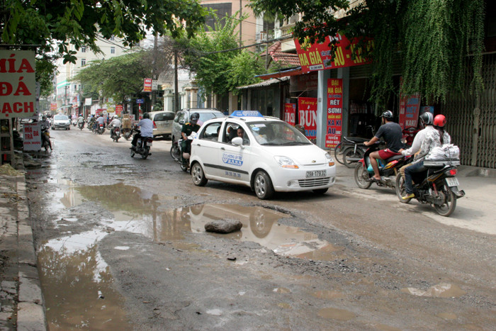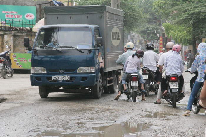 | Thậm chí mặt đường còn xuất hiện các hố rộng,đọng nước bẩn. |