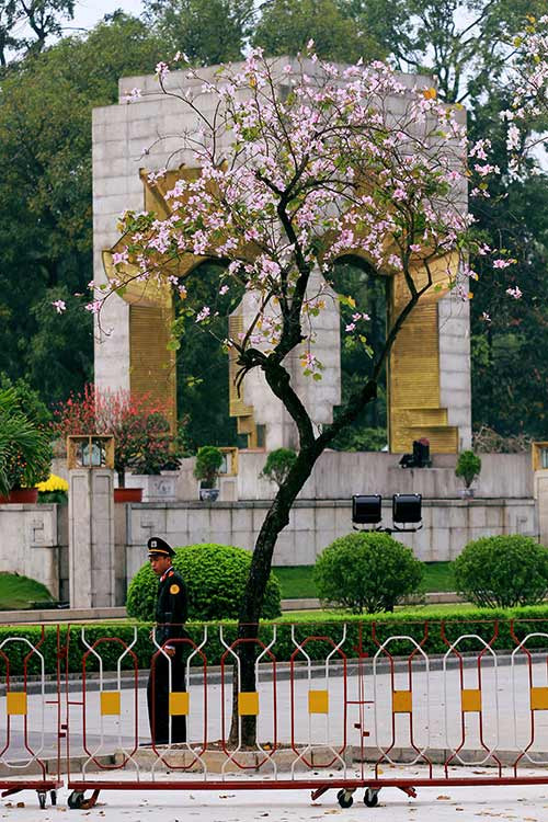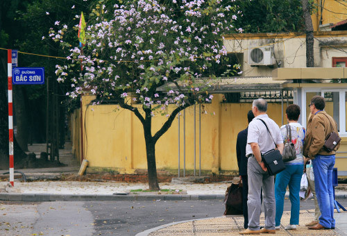 Trong tiết trời xuân ấm áp, sắc ban tím của đất trời Tây Bắc làm bừng sáng cả con đường Bắc Sơn trước Lăng Bác.