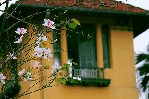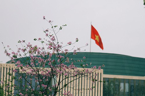 Hoa ban khoe sắc cạnh tòa nhà quốc hội mới.