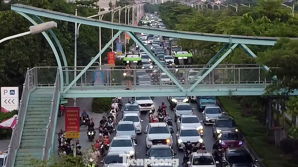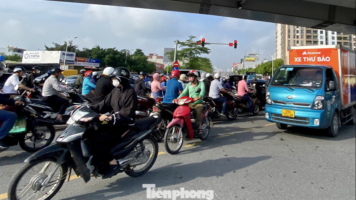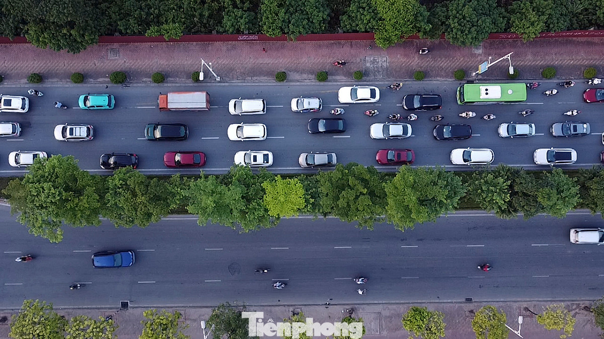 Ô tô nối hàng dài, đi vào cả phần đường dành cho xe máy, xe đạp.