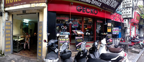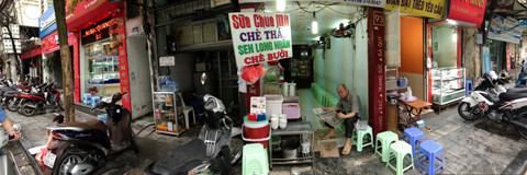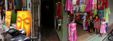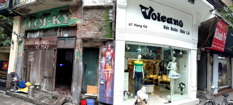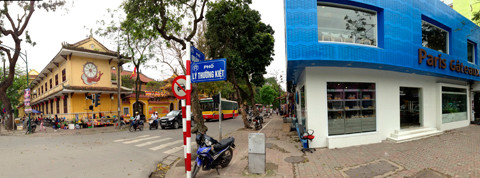 Chùa Quán Sứ và một cửa hàng đang hoàn thiện trên phố Lý Thường Kiệt.