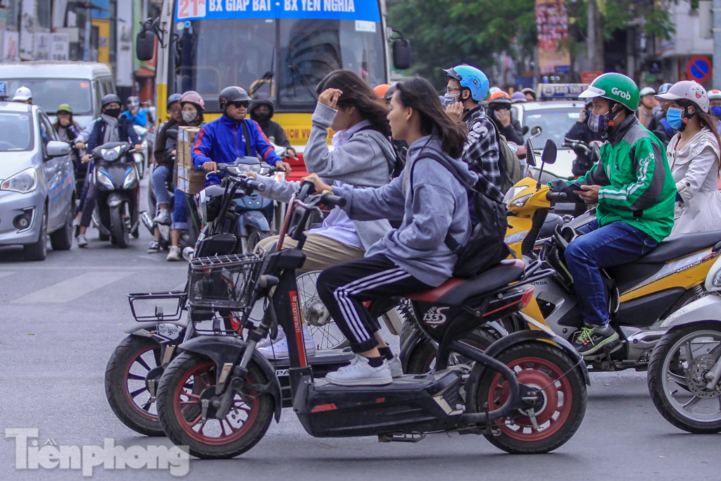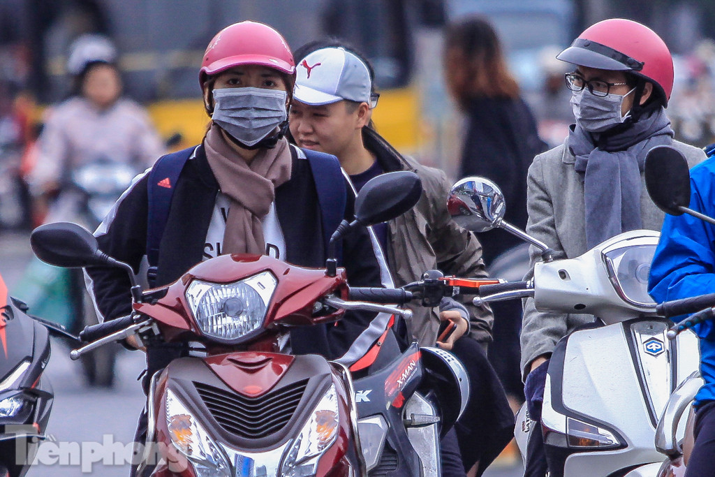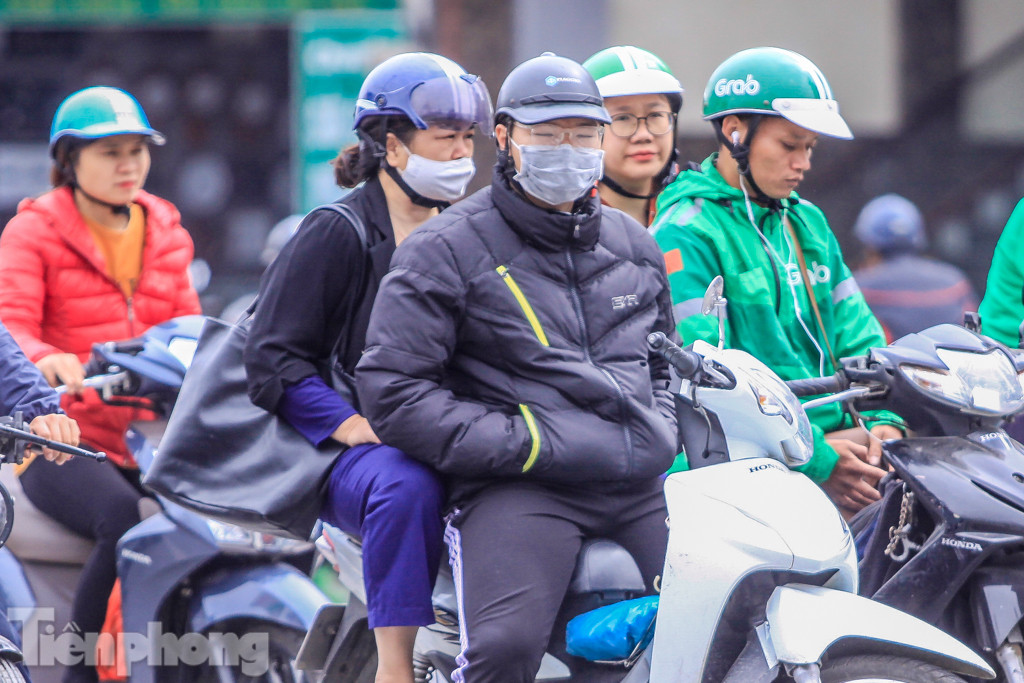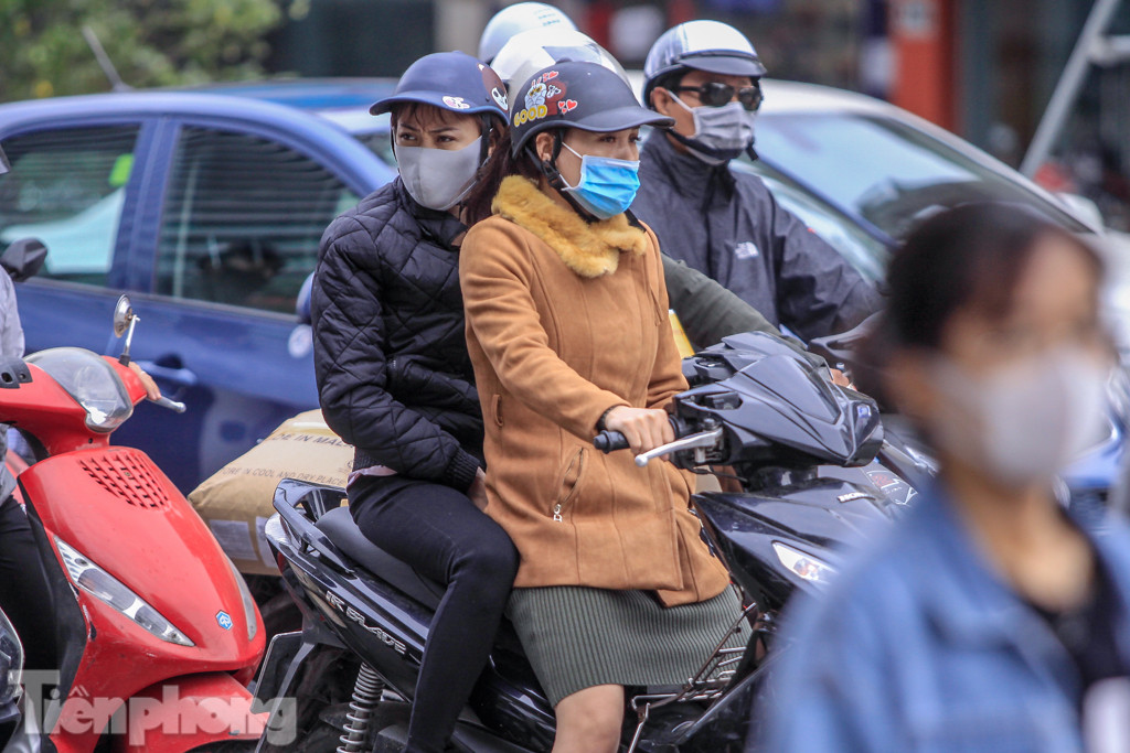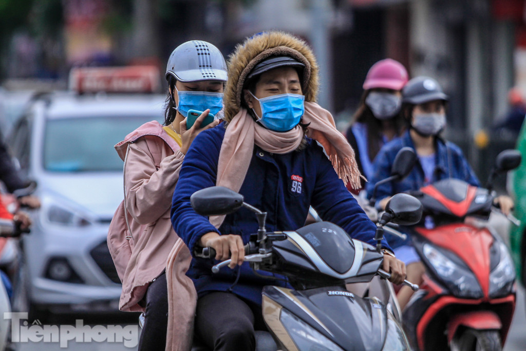 Trời lạnh, nhiều gió khiến người dân Thủ đô ai cũng phải khăn áo "kín mít" khi ra đường.