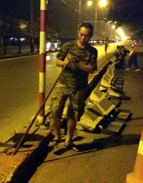 Phần lớn dải phân cách này được làm bằng sắt có sơn phản quang và đặt trên móng xây bằng gạch. Ước tính, cả nghìn mét dải phân làn trên nhiều tuyến phố được dỡ bỏ trong những ngày qua. Ảnh: Otofun