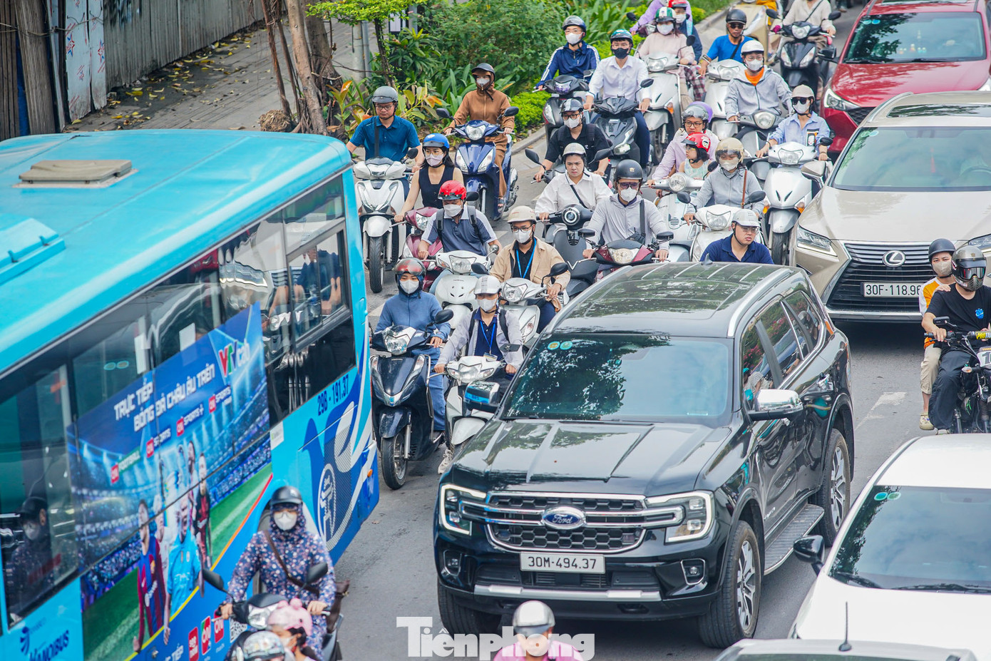 | Tuyến đường Trần Duy Hưng còn xảy ra tình trạng ô tô phủ kín tất cả các làn đường, khiến xe máy không còn chỗ di chuyển khiến giao thông trở nên hỗn loạn, ùn tắc cục bộ. |
