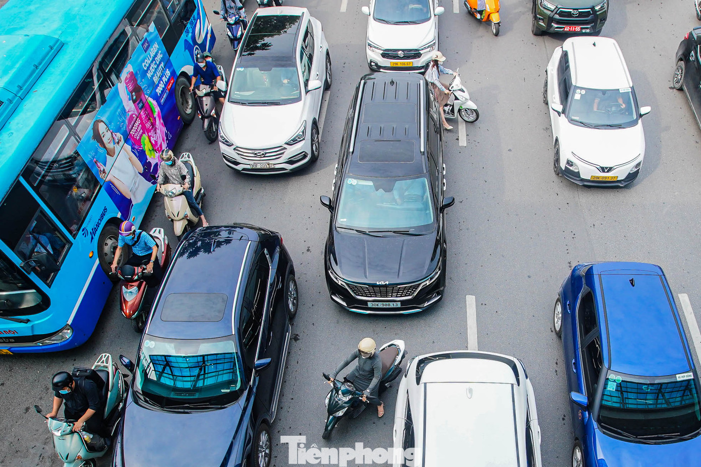 | Ô tô phủ dày đặc cả 5 làn xe, thậm chí dàn hàng 6-7 trên đường. |