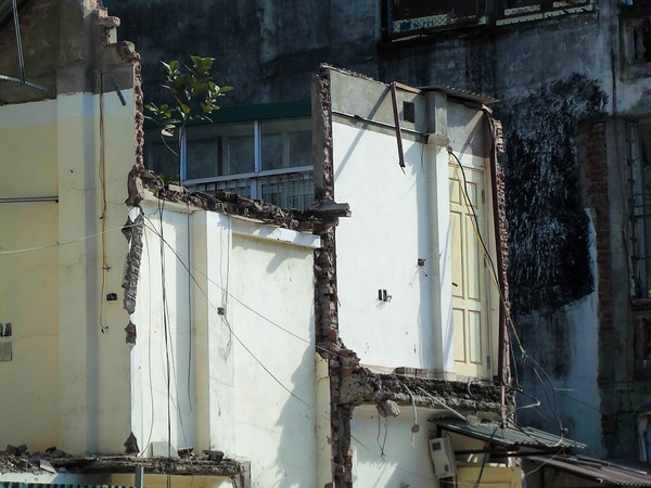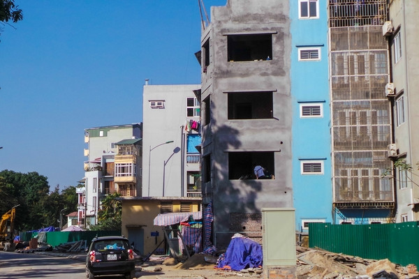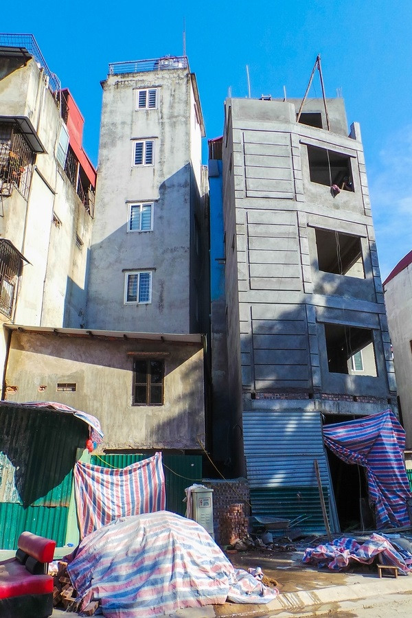 Giữa những tòa nhà cao thấp, quay các hướng khác nhau lại có những khoảng cách ở giữa trông rất “kỳ dị”. Những công trình mới xây "đua nhau" mọc lên trên những mảnh đất còn lại sau GPMB tạo nên những ngôi nhà dị dạng, không theo tiêu chuẩn kiến trúc nào.